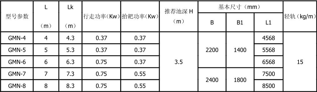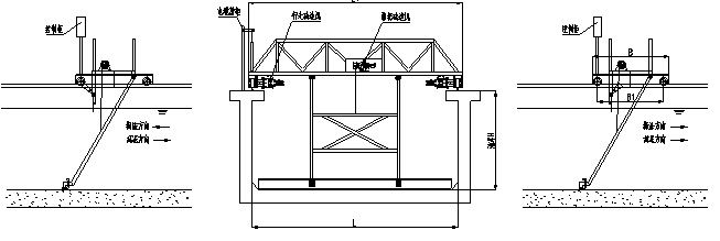 1 兩槽同設一端:刮泥耙下降、撇渣板下降→刮泥機由池端(出水端)始點向泥、渣槽端行駛,將污泥浮渣刮集輸送直至終點(進水端)→刮泥耙上提、撇渣板上提→刮泥機由終端向始端換向行駛→抵達始端后停機或進行另一循環(huán)。