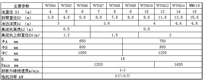 常見用途: WNG 型濃縮池刮泥機用于污水處理廠重力式污泥濃縮池,將濃縮污泥刮集至池底中心集泥坑,以便進一步作污泥脫水處理。 主要特點: 1、比傳統(tǒng)的傳動環(huán)節(jié)少,機械效率高