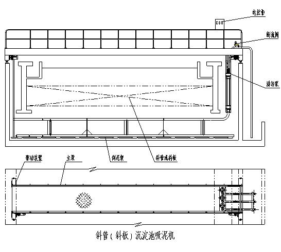 機(jī)采用單或雙管式梁、型鋼梁;特別是斜管沉淀池水中吸泥管既為通道又作承載構(gòu)件,因而用料省且制