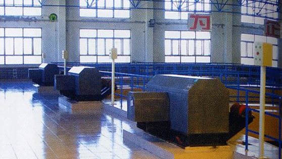 驅(qū)動卷揚裝置設(shè)在池頂走道板上,兩套換向機構(gòu)設(shè)在沉淀池集泥槽側(cè),其位置應(yīng)與刮泥車上碰桿相對應(yīng),二十套改向滑輪組與池壁上的預(yù)埋件焊接定位,兩臺刮泥車調(diào)協(xié)在池體底部的軌道上,一臺在刮泥行程的終端,一臺在刮泥行程的起點。每臺刮泥車首端用鋼絲繩與卷繩筒相連,兩臺車尾端用鋼絲繩連接,組成一個運行鏈,單向刮泥。