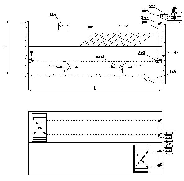 2)進水端沉泥量大,故池內(nèi)集泥槽最好設(shè)在進水端,使大量沉泥刮送距離短,增強排泥效果。