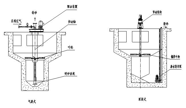 螺旋線加速沉降,同時有機物在水流的作用下,隨水流漂走,沉入池底的砂經(jīng)空氣或泵提升,與少量污水進入砂水分離器中進