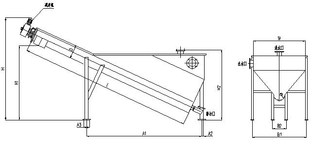 動下,砂粒沿斜置的槽底提出升,離開液面后繼續(xù)推移一段距離,在砂粒充分脫水后經(jīng)排砂口卸至盛砂桶,